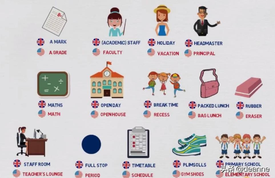 下面搜罗了部分英式英语和美式英语的主要区别,供大家查阅;主要从语法、词汇、拼写、发音四大方面进行对比: