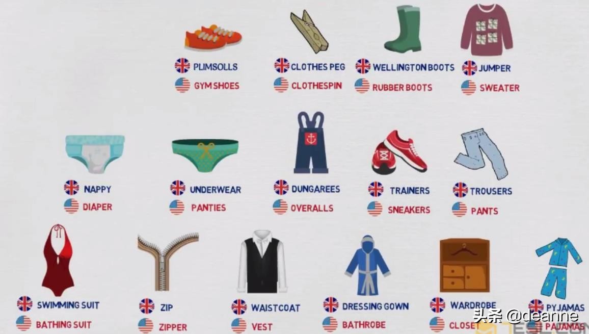英式英语和美式英语对一些词汇的表达有所不同。即使是同一个词,也有不同的含义如angry (Brit.) = mad (US),下面列举常见的词汇。