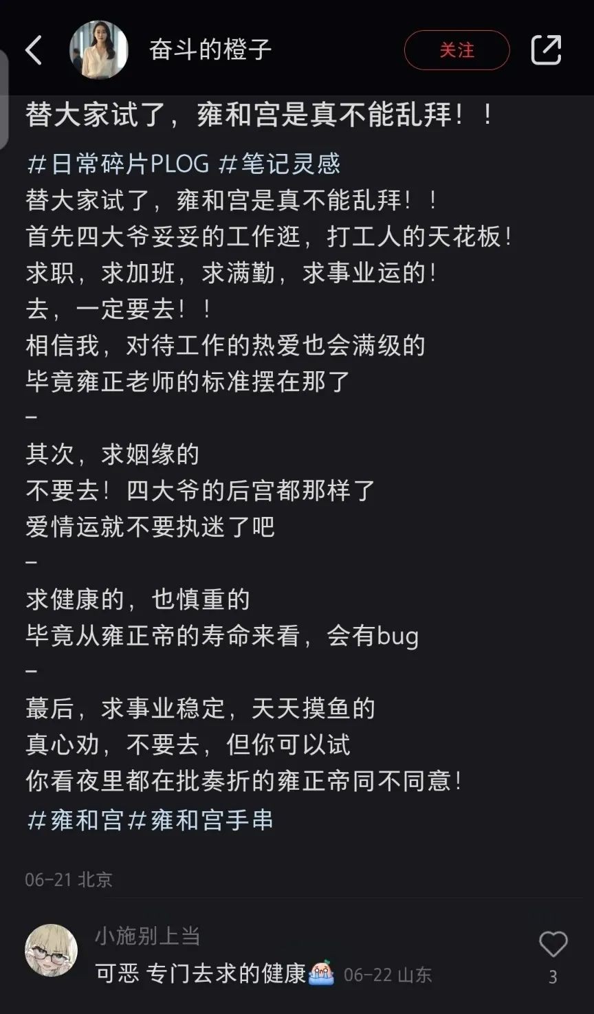 但好评归好评,不只一人怀疑雍和宫就是实习神仙们的道场。