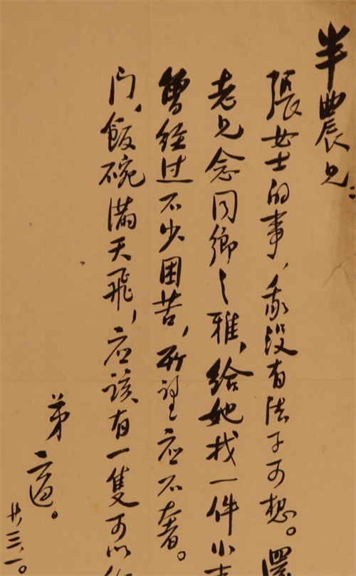 另外一通是胡适写给刘半农的,信中所说的张女士已无从查考。《胡适日记》中也未见详细记录,查民二十年5月8日条,有记录应与此事合,日记中提到“C.N来我家…”,C.N应该是张女士的代称。刘半农是民十九年5月5日就任北平大学女子文理学院院长一职,次年6月20日主动辞去该职务。此信正写于他担任院长一职期间,故而信中称半农为“院长”,胡的语气并未觉得有恳求之意,而更像是朋友间的嘱托,并捎带有滑头气。(照片六)