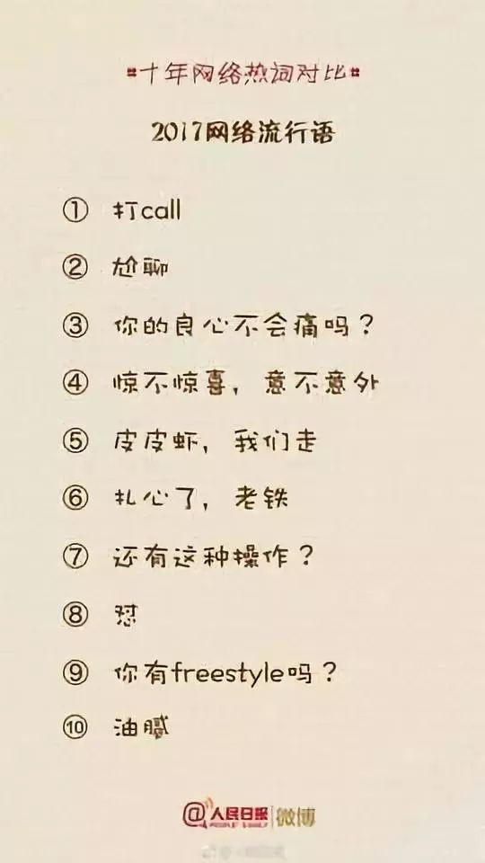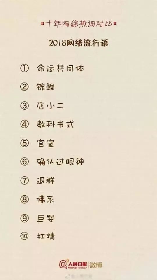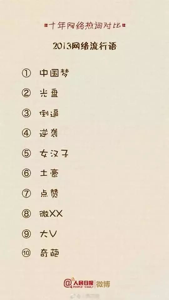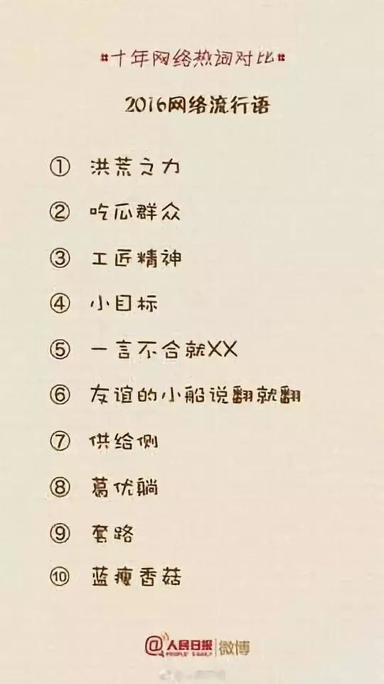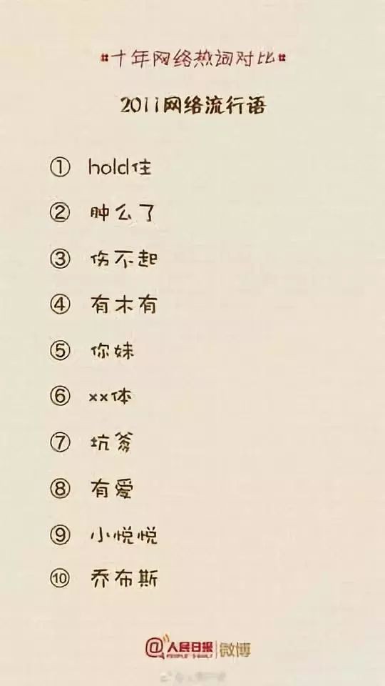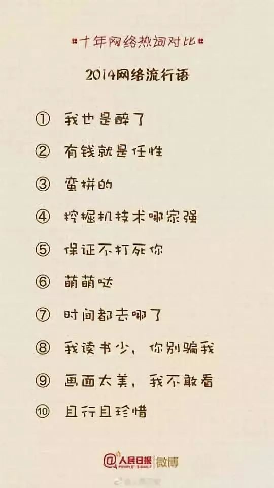 人民日报微博曾经做了一个非常有趣的整理,整理了这十年“十大网络流行语”的变化,让我们一起来看看这十年我们的语言都在悄然发生着哪些变化?哪些词已经无人问津?又有哪些词依然让人津津乐道?你常用的还有哪些词?