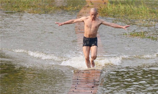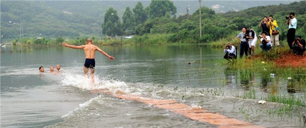 虽然释理亮凭借轻功“水上飘”在水面上跑出了125米的傲人成绩,创造了一项新的世界纪录,但是,人前显贵背后受罪,一直是学艺和习武的至高法门,释理亮也不能例外。
