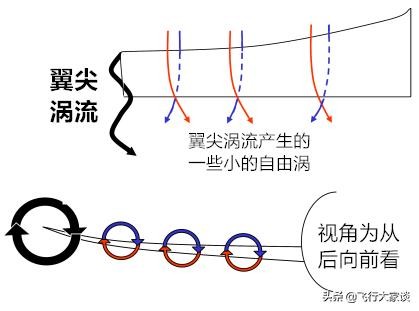 翼展方向偏转的气流。涡流的起源有两个,分别在机翼的上表面和下表面。