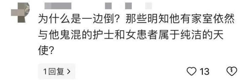 有网友表示难以理解:“如果网上的传闻是真的,那么一些所谓的护士小姐姐明知道这个医生已经有家庭,为什么还要和他纠缠不清呢?她们到底在图什么?难道只是因为这个医生长得帅吗?这样的行为真让人摸不着头脑。”
