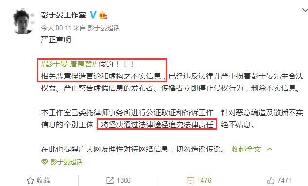 1月26日凌晨, 彭于晏通过社交平台发声辟谣:假的,无聊,烂透了。