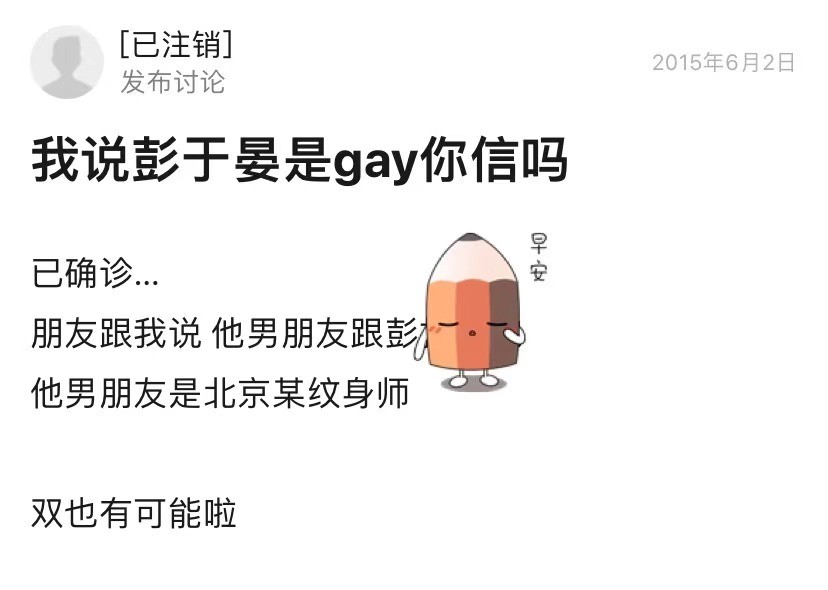 人红是非多, 在2015年就有网友造谣彭于晏是GAY。