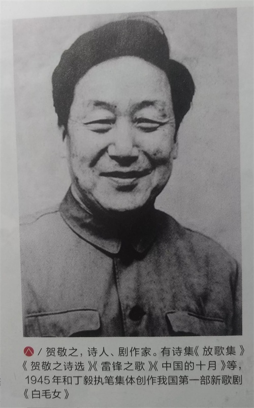 这期间,毛泽东主席的一系列讲话对贺敬之的文艺创作影响很深,贺敬之很重视民间文艺形式,他参与了歌剧《白毛女》剧本的创作。当年他只有21岁,成为了《白毛女》剧本创作的主要执笔者。