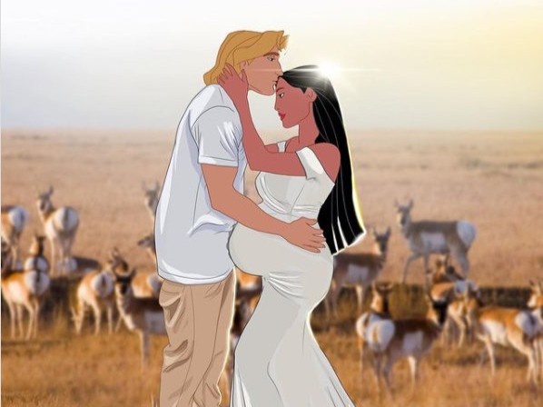 宝嘉康蒂是迪士尼公主中少有的黑人公主,动画中的她勇敢机智,敢爱敢恨,给人留下了深刻的印象。现在她也当妈妈了,和王子一起拍孕照时公开秀恩爱,一个彬彬有礼的额头吻,不知道迷倒了多少人。