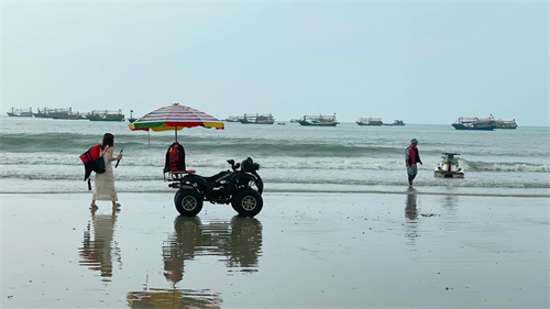 第四个人给我们建议,去桥港海滩吧,那里也是银滩。我是第一次骑电车,不敢提速,开了一个小时才到桥港,电车费支付了8元。但是这里虽然是个不错的海滩,却并不是银滩,游客也不多。