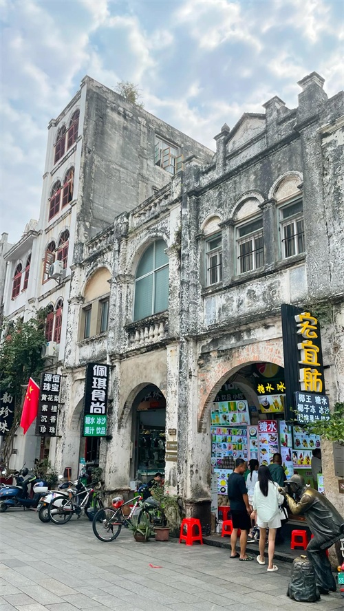 穿过一条狭窄的胡同,老街让我眼前一亮,房子墙面好像发霉了,卷拱外沿及窗柱顶端却线条流畅、工艺精美,中西合璧的建筑风格,像欧洲又不完全欧洲。有一种沧桑之美,让我一下子就喜欢上了。