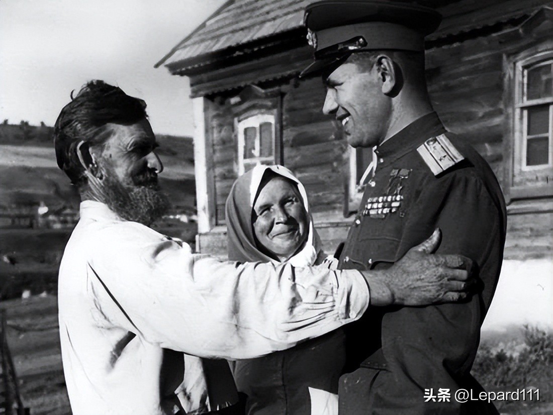 3,1945 年,战后返回家园的苏联军官,图中的苏军大有来头,他叫伊万·阔日杜布是苏联大名鼎鼎的王牌飞行员。