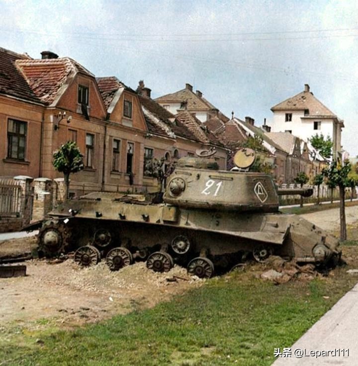 7,一辆苏联IS-2重型坦克在捷克斯洛伐克的兹诺伊莫镇被击毁
