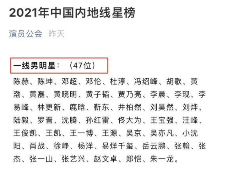 1月23日,一个名叫“演员公会”的账号发布了有关2021年内地男女星线星排名表,引发了网友们的热议。因为在这份表格中,有太多的疑问了。