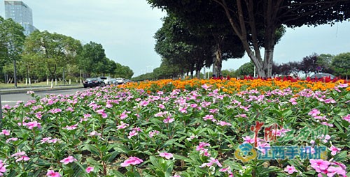 “与很多钢筋水泥浇筑的城市不同,在红谷滩生活很舒心!发现了吗,红谷滩街道两旁绿化带一年四季都有鲜花装扮!”陈闻志说,据他观察,赣江中大道、红谷中大道、丰和中大道等主要道路的花草,有三色堇、角堇、羽衣甘蓝、金盏菊、石竹5个品种,色彩斑斓的花草把红谷滩装扮成了靓丽的花园。