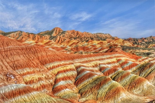甘肃张掖市 - 七彩丹霞地貌:位于河西走廊中部,因其丰富多彩的颜色而成为摄影师们钟爱的拍摄对象。这里的地质景观独特,令人难以置信。