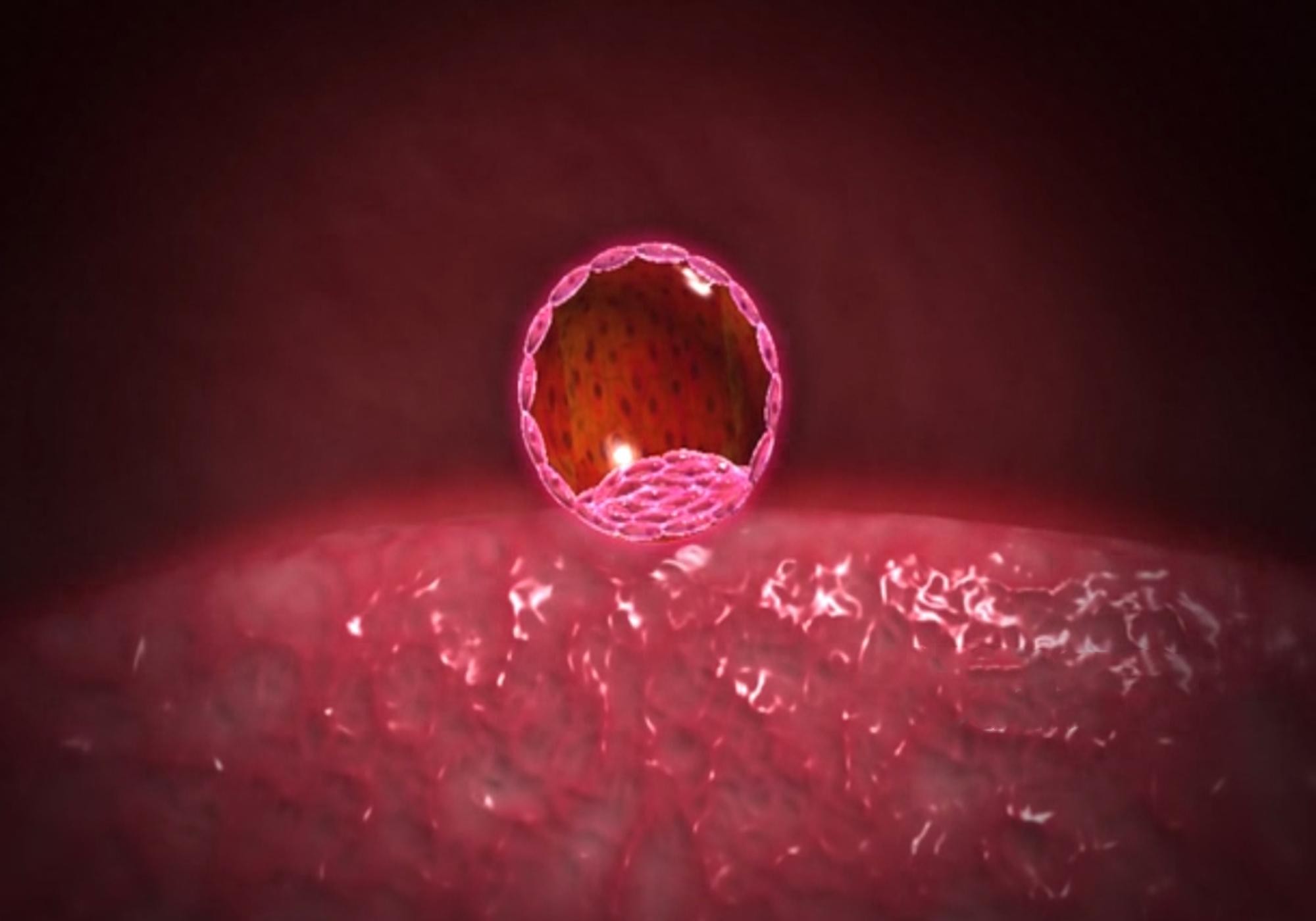 受精卵处于高速分裂状态,在子宫内绒毛的推动下,开始在子宫内选地着床,5周末左右进一步发育成胚胎。此时胎儿长度为0.4cm左右,肉眼可以识别,但依旧非常渺小。