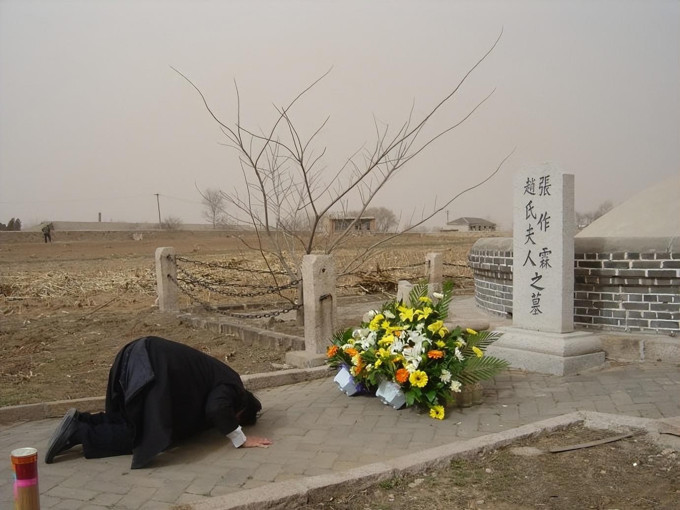 张闾实跪在张作霖墓地前
