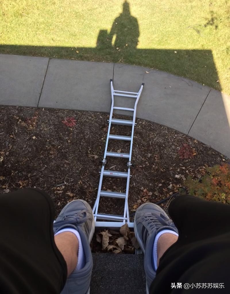 18.男子在屋顶工作完之后发现梯子已经先躺下了······怎么办?在线等······