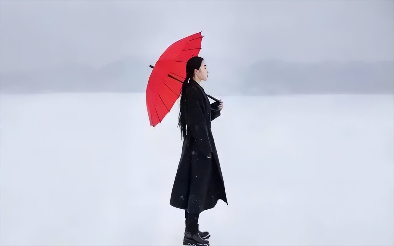 选择颜色鲜艳的伞与白色雪景产生色彩的对比;或是一把透明的伞,让画面更加文艺 ▼