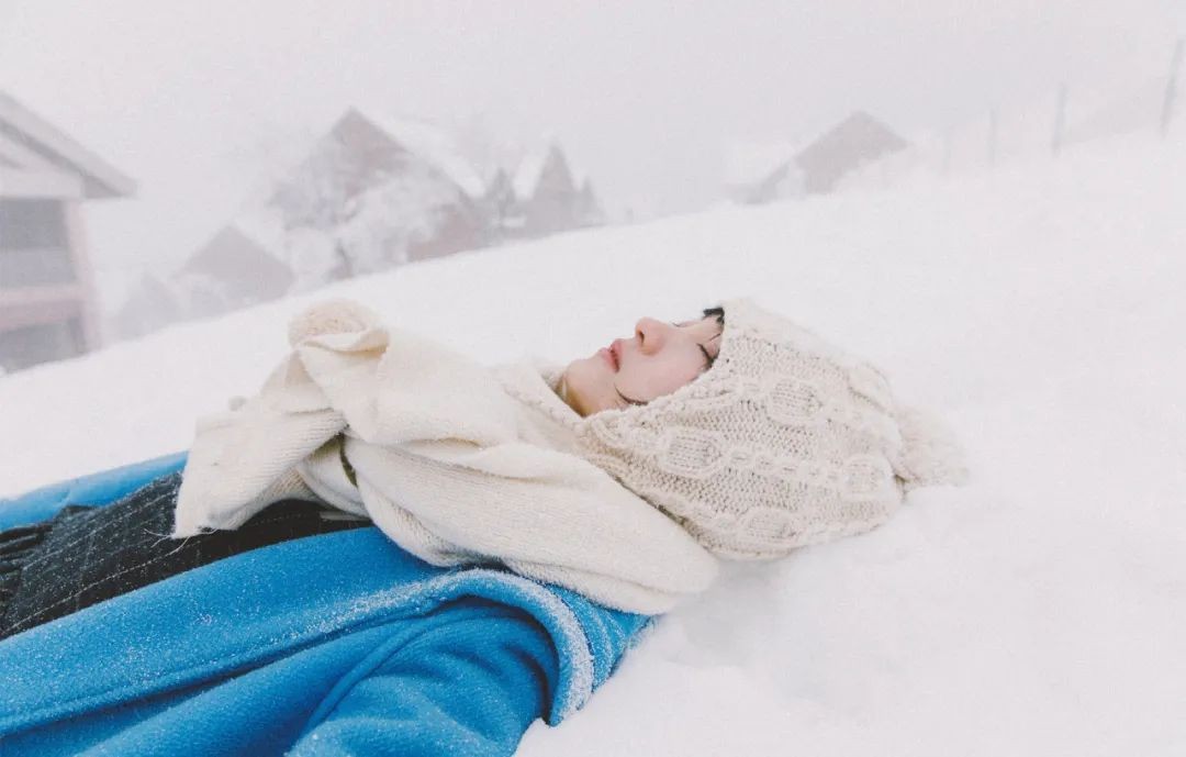 把头低下也是一个不会出错的拍照Pose,在冬日里显得人物更加温柔、静谧