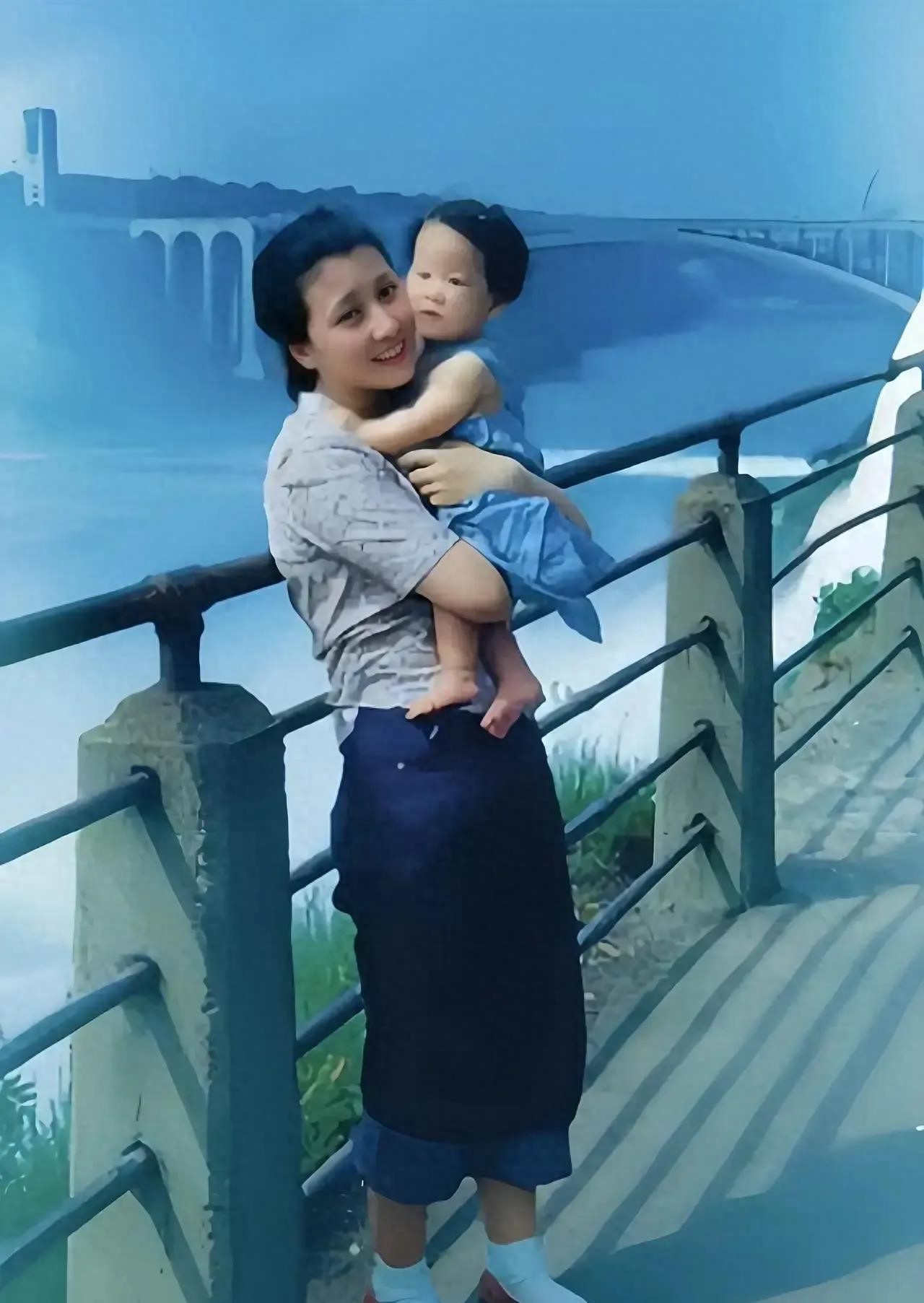 1952年蒋英和女儿钱永真,在尼亚拉加大瀑布前,一张罕见的留影。