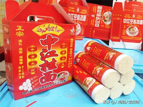 中江是川中丘陵大县,经济虽然不太发达,可是却很有名。抗美援朝战争时,中江出了个特级战斗英雄黄继光,敢于用自己的血肉之躯去堵机枪。如今的继光水库、继光镇,都是为纪念黄继光而命名的。不过中江最出名的,还是要算中江挂面,已经有近千年的历史。中江挂面细如发丝,洁白空心,光滑柔韧,风味独特,回锅如新,已经从宫廷贡品成了川西地区走亲访友的馈赠佳品。