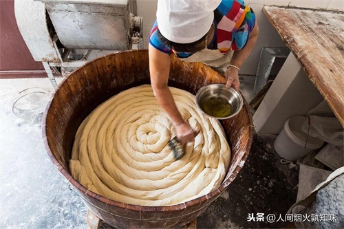 醒面是面团利用自然环境中微生物进行发酵的过程。通过醒面,和好的面就更有韧性,更容易消化。醒面的时候,需要用干净塑料布将面团完全盖住,还需要固定的时间。在中江挂面的制作过程中,像这样的醒面需要五次,每次的时间也有所不同。
