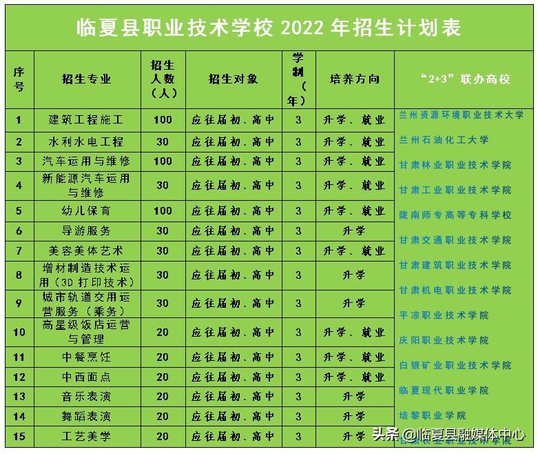 临夏县职业技术学校【2022年招生简章】