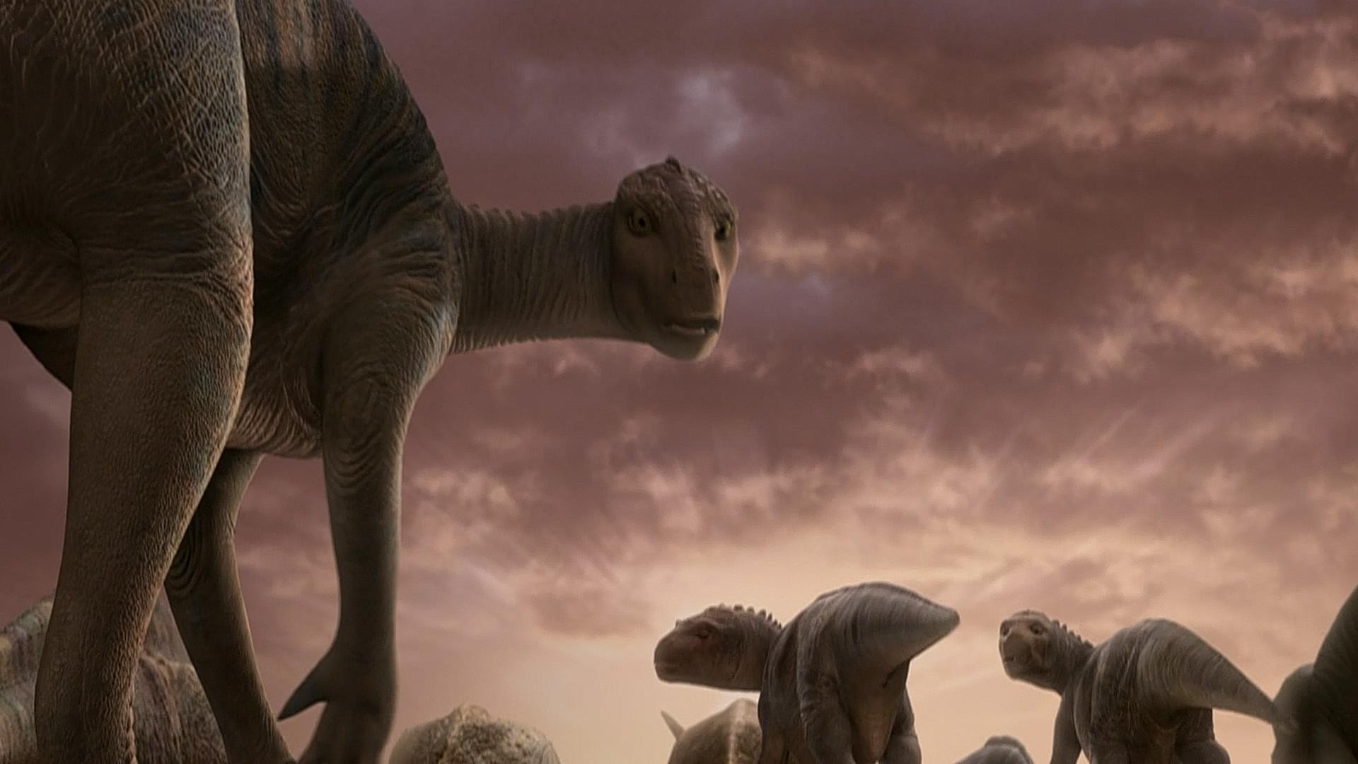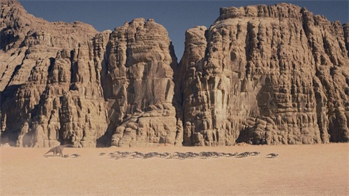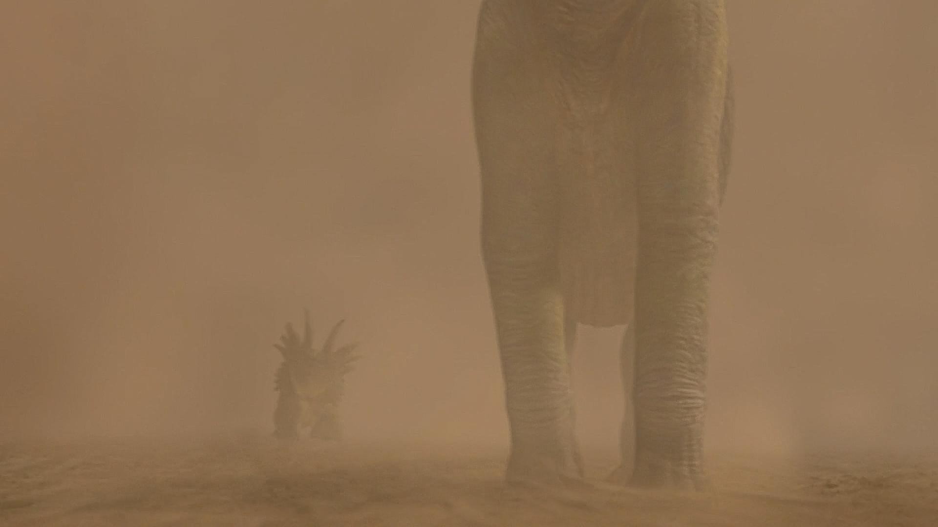 前往繁殖地的路程非常艰辛,恐龙们不但要坚持高强度的急行军,还要忍受烈日曝晒和没有水喝的痛苦,时不时会有虚弱的同伴倒下。
