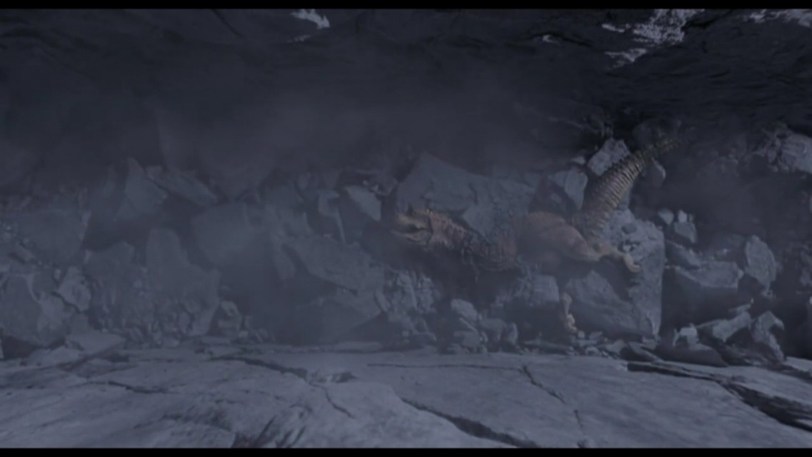布鲁顿还是有两下子的,一尾巴甩过去就把小牛神打趴在石柱上动弾不得,这时脆弱的山洞发生塌方,布鲁顿和两只牛神都被掩埋在乱石之下。
