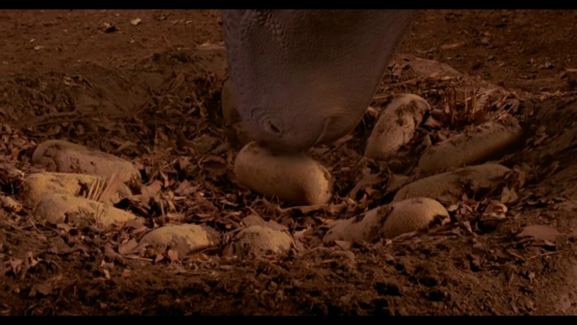 禽龙母亲被迫放弃小窝逃跑,在牛神的铁蹄下“蛋碎了一地”,只有一个幸免于难。