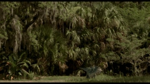 一只好奇心旺盛的小副栉龙四处跑动,追逐嬉戏,撵着一只会飞的蜥蜴跑进了森林。