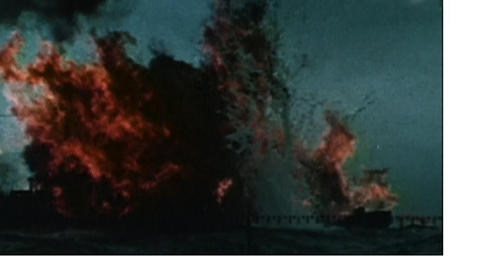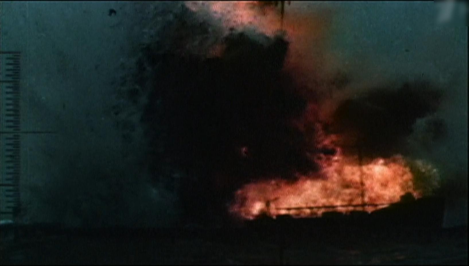 这艘货船瞬间化作一片火海