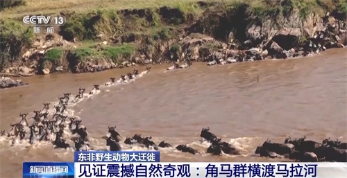 总台记者 刘晨:同时,今年由于大迁徙路径的变化,导游们也说,这让很多掐着时间来到马赛马拉看角马渡河的游客不能尽兴而归。但其实真正的野生动物大迁徙不只有角马渡河,不只是“天国之渡”这样单一的场景。其实野生动物大迁徙的持续时间长达数月,并且一直在进行。即使不在河边,我们也能在广袤的大草原上,在远处丘陵上看到成片的角马,有时他们会排着队有序地穿越这片草原。成片的角马列队前行,也是很壮观的景象。所以如果大家有机会在这个季节来到马赛马拉,野生动物大迁徙的大片其实每天都在上演。