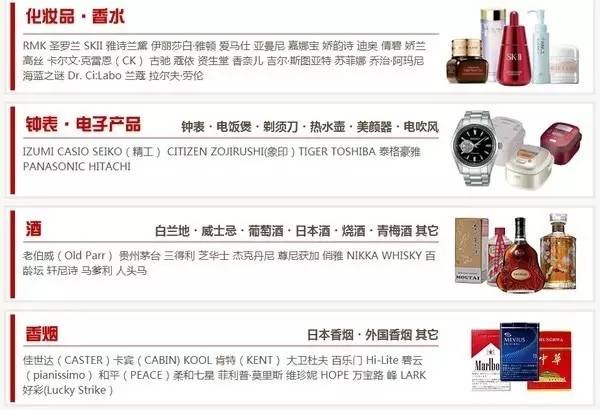 附一张关西机场免税店的品牌一览
