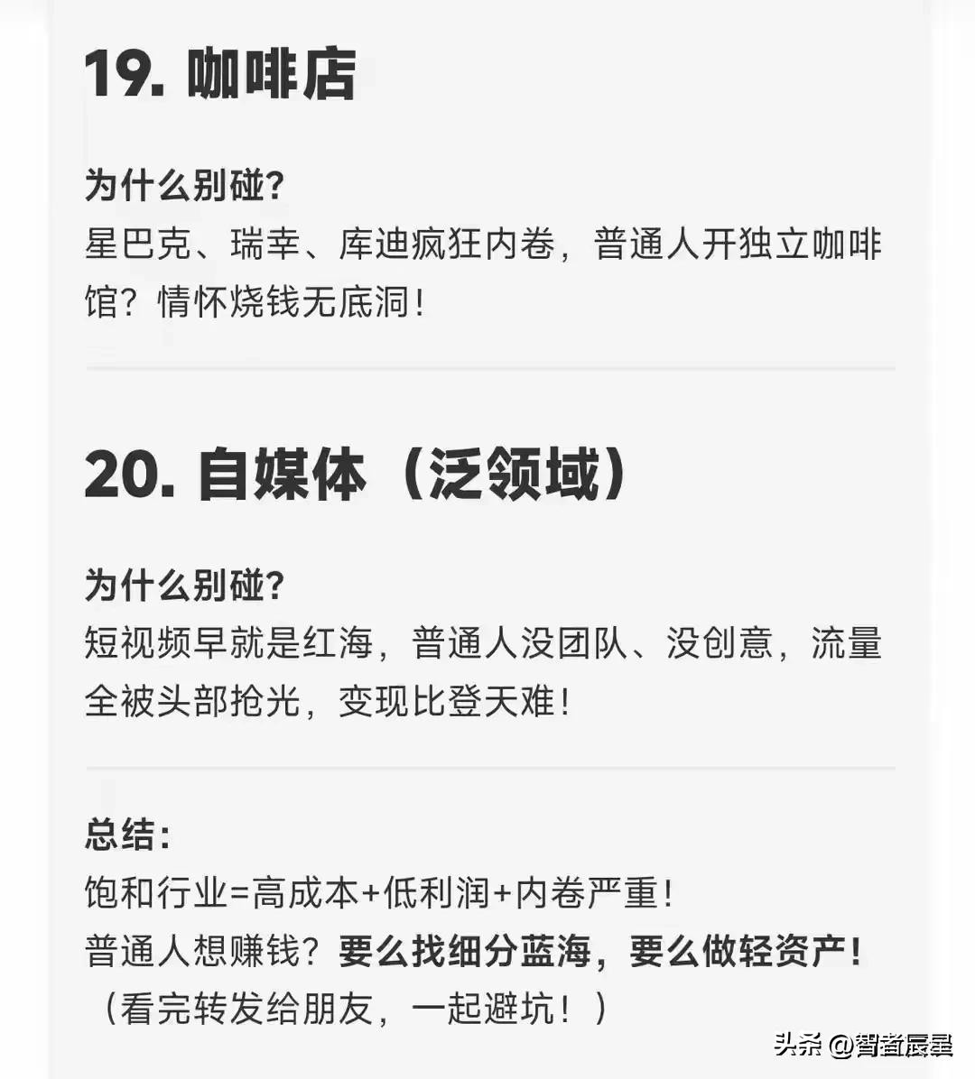 面对这 20 个饱和行业,并非绝对不能涉足,而是需慎之又慎。若有颠覆性技术创新、独特商业模式、强大品牌塑造能力,或许能在红海之中寻得一丝生机,开辟新航道。但对于大多数创业者、投资者而言,关注新兴产业、挖掘未被满足需求,无疑是更为稳妥、明智之举,以敏锐眼光捕捉时代机遇,方能在商业浪潮中稳健前行,书写属于自己的成功篇章。