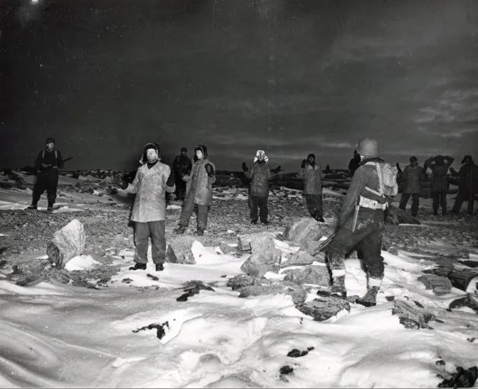 图十三 1944年10月,美军在格陵兰岛俘获德军秘密气象站的“雪绒花二号”工作组