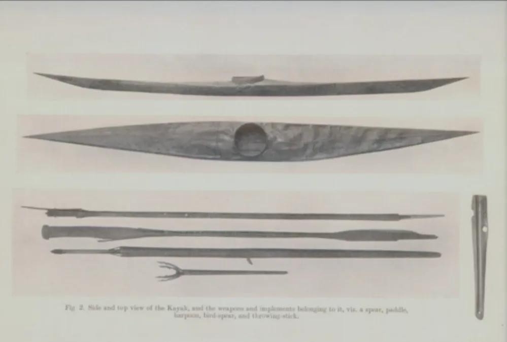 图三 因纽特人征服海洋的皮划艇和渔猎工具