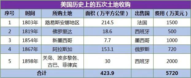 读者可能对美国提出购买别国领土感动诧异,其实,历史上美国购买国土的事情屡见不鲜,著名的有五大购地事件: