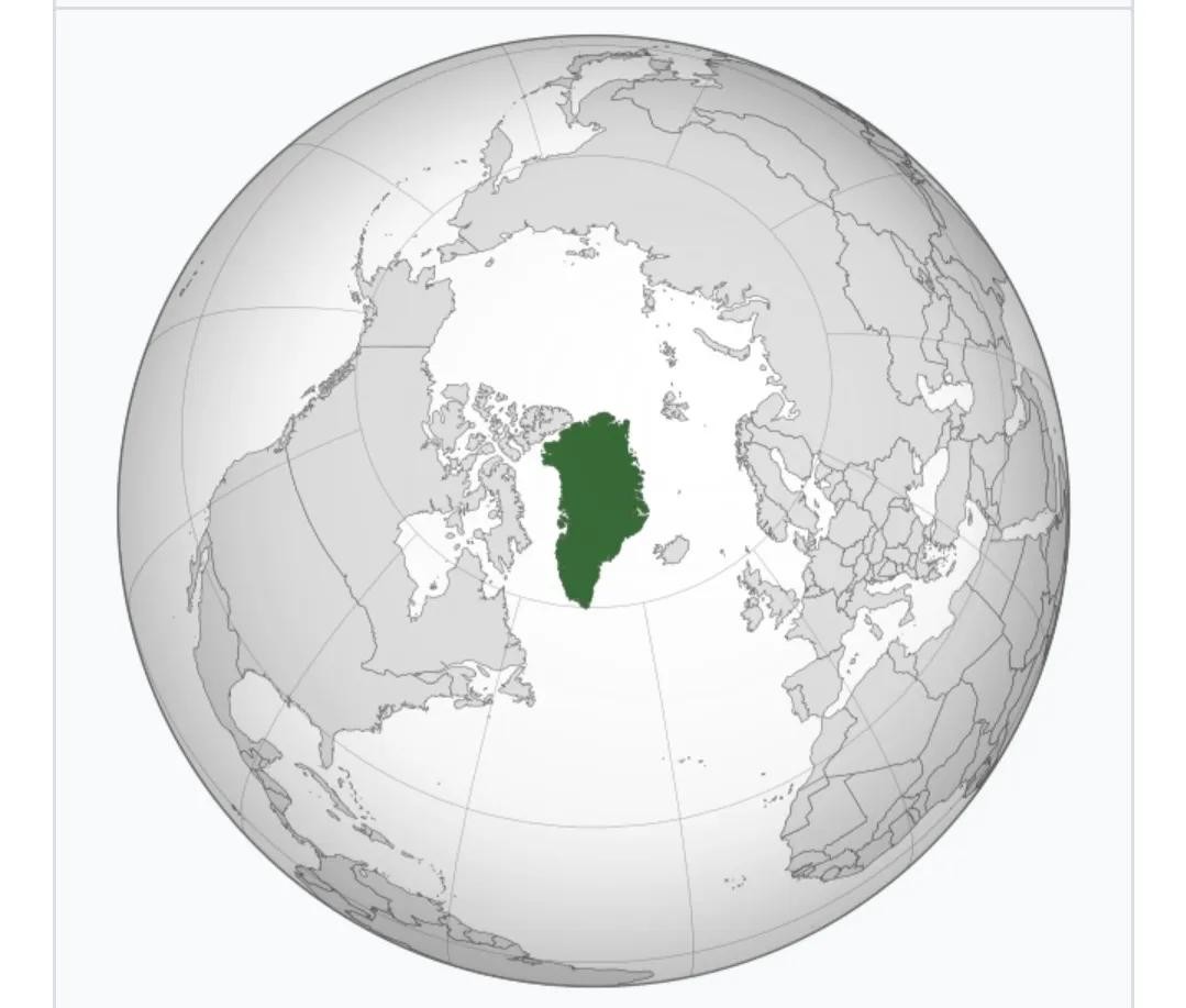 图二 格陵兰岛在地球的位置,这样看,它位于主要大陆之间的中枢
