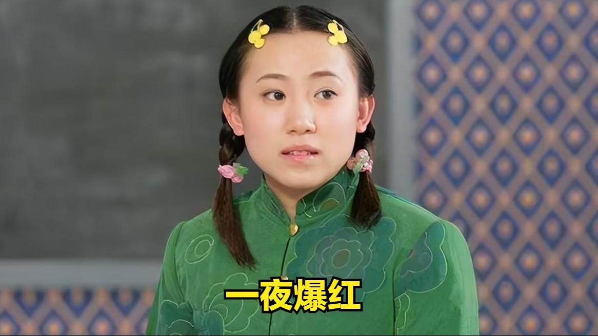 她身穿一身红配绿的演出服,两个可爱的麻花辫,和小沈阳一起一夜爆红。