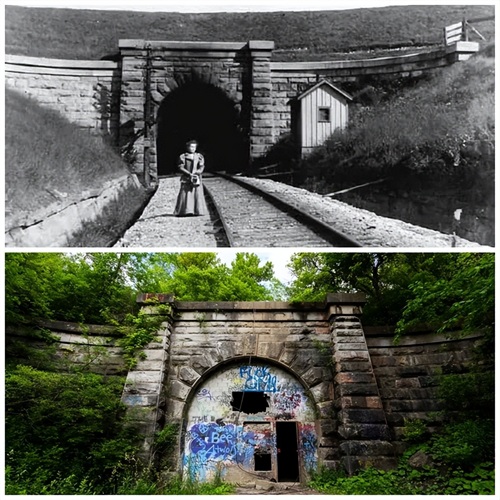 克利夫顿岩石铁路。1905 年和今天