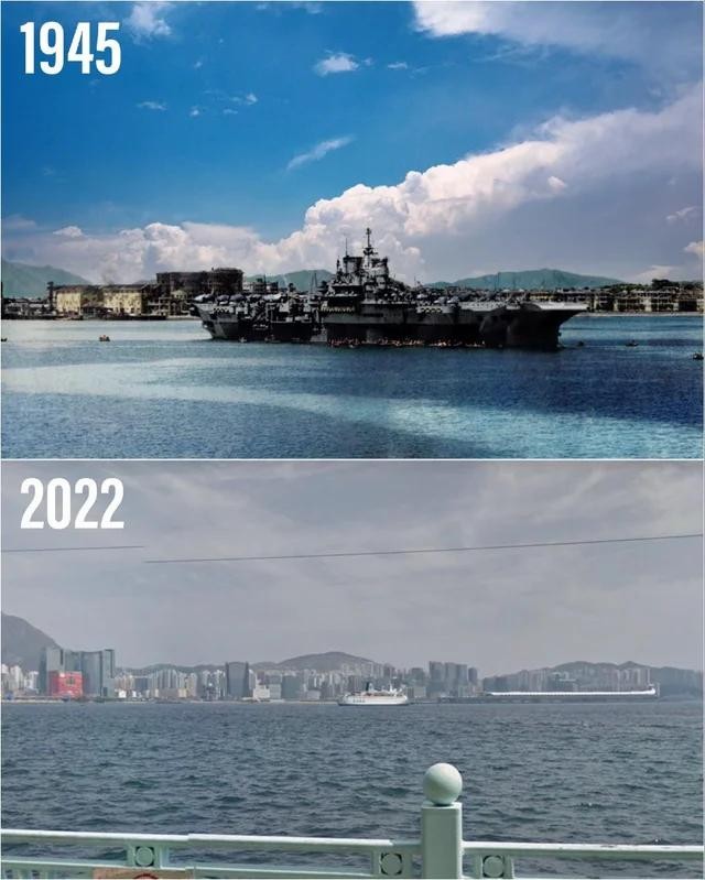 香港港口。1945 年 9 月对比今天。