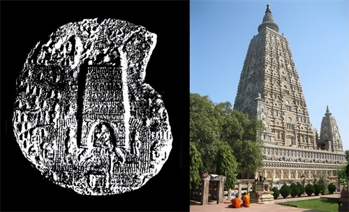 印度菩提伽耶的摩诃菩提寺,二世纪的牌匾上的刻画,以及它今天的样子