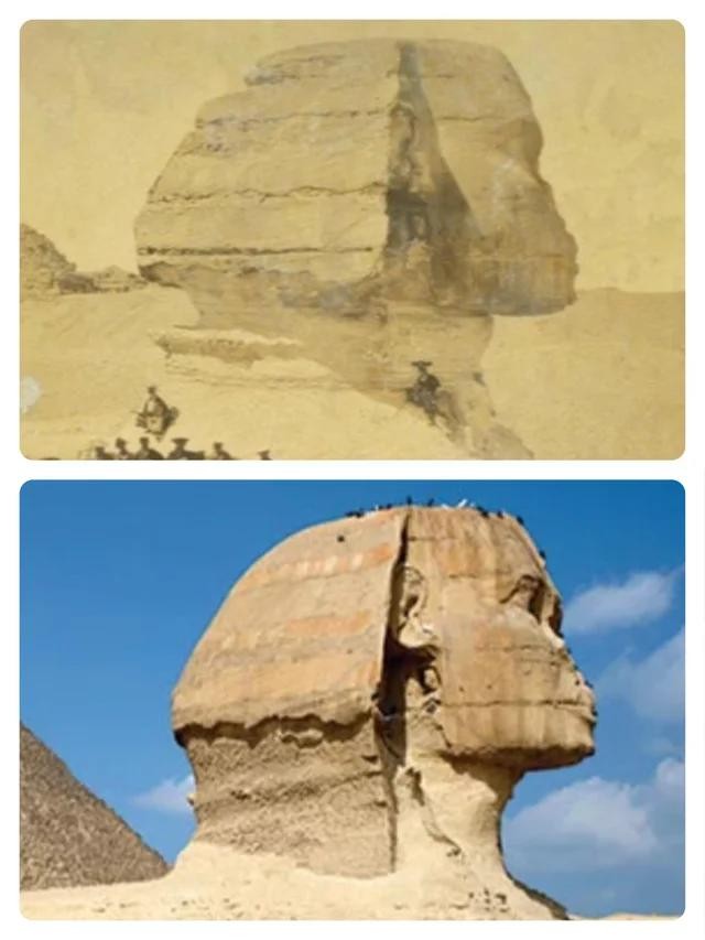 吉萨狮身人面像。1864年和现在