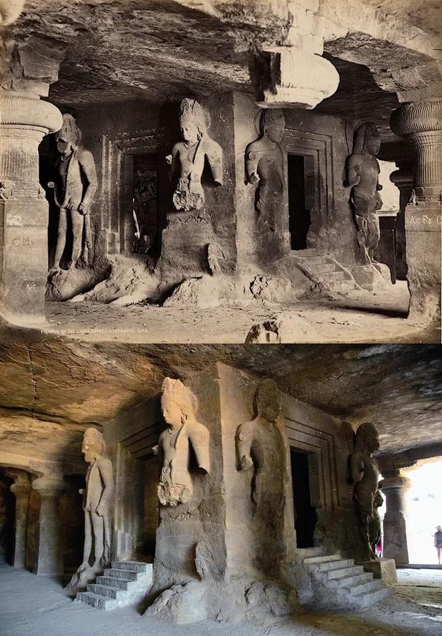 5世纪湿婆洞穴寺庙。塞缪尔·伯恩(Samuel Borne)于 1863 年拍摄的图像。