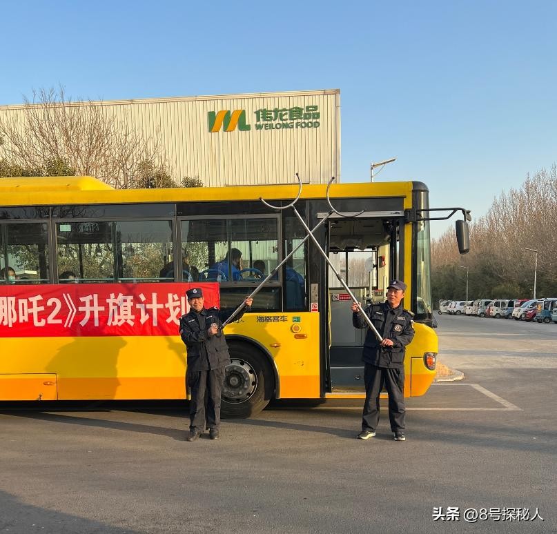 甚至连厂里的保安师傅都跟着一起去看电影了,还带上了叉子,直接扮演哪吒里面的结界兽,还别说,师傅扮演的真挺像那么回事的!