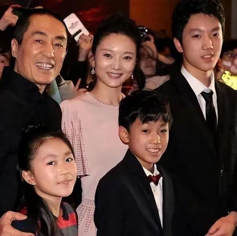 而后又为张艺谋连生三胎,成为张艺谋名正言顺的妻子。