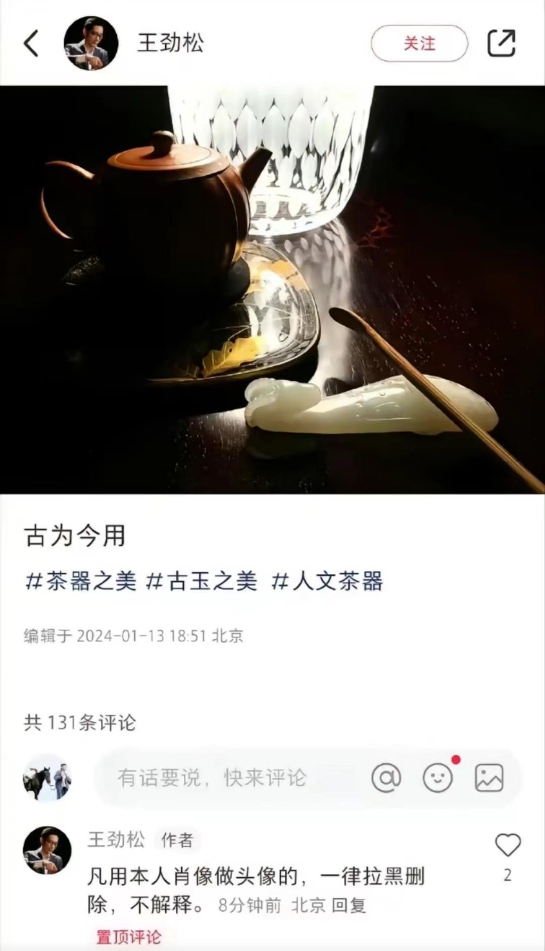 翻看网友之前截图留证的评论中,王劲松不止不允许网友使用自己的肖像做头像,还对网友说出了不回复网友留言让对方自己找原因,这种带着“耍大牌”性质的迷惑言论。