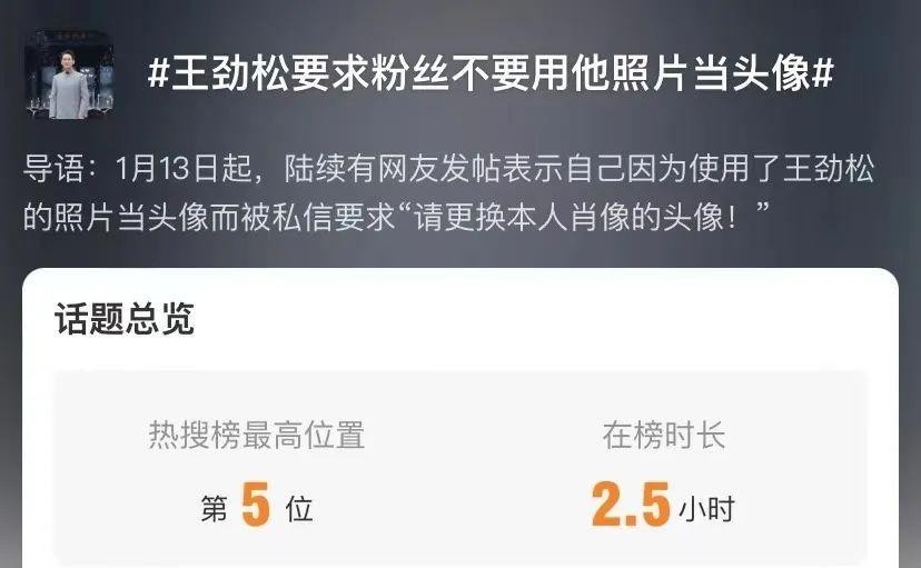 自1月13日起,不少网友表示接到演员王劲松的私信,要求其更换带有其本人肖像的头像。随着越来越多网友附和,相关内容也随之冲上热搜。